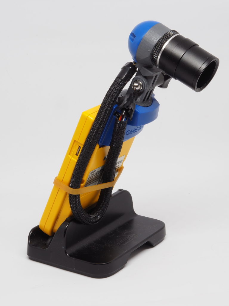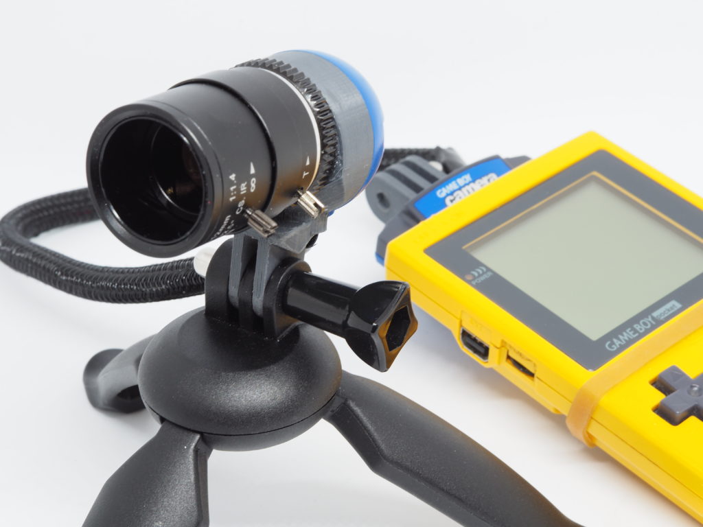 I previously made this lens mod (not of my conception) that allowed interchangeable lenses, with zoom and manual focus. It is really great shooting with , and you can get some nice bokeh, thing that was not possible with the stock camera. But I was not 100% comfortable in some shooting situations. Sometimes you need to get the camera on a tripod, for trichromy (getting a color image from 3 picture taken behind red, green, and blue filters) or for “HDR” photography (shooting different exposures of the same scene to get a greater precision on the pixel values). One common method is to get the whole Gameboy on a smartphone clamp mounted on a tripod. But the one that I had was not strong enough, and triggering the shutter button was making the whole moving a bit.